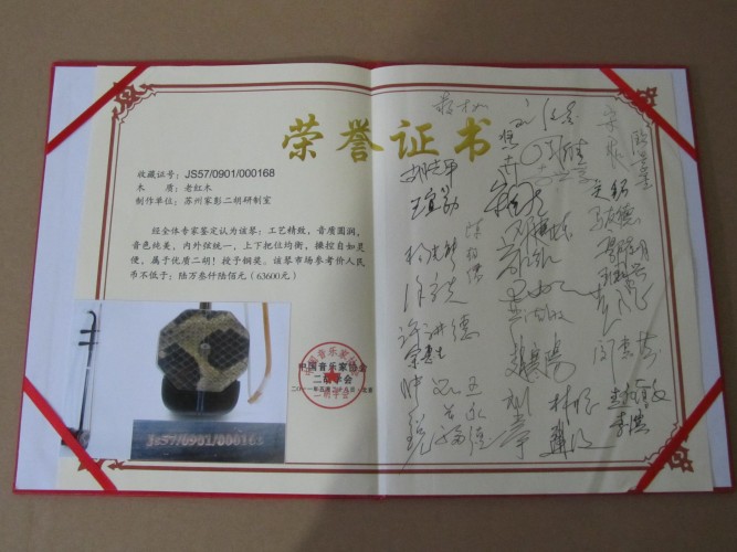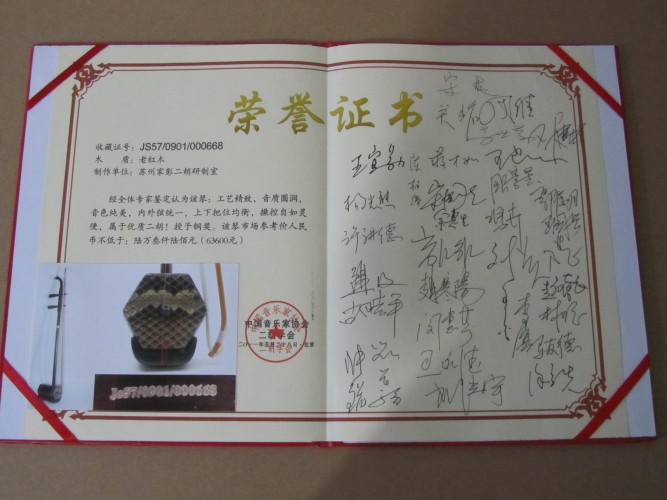 二胡制作大師丁家彭先生1949年出生樂器世家,17歲隨其祖父學(xué)琴藝,并深得精髓,其聰穎好學(xué),悉心鉆研與 探求二胡制作,博得同行的欽佩贊許,更得了許多知名演奏家的稱贊,充分認(rèn)識(shí)到二胡制作每個(gè)環(huán)節(jié),都對二胡制作都有影響力,因此對二胡的選材,選料,蟒皮都十分嚴(yán)格,二胡整體穩(wěn)定性良好,環(huán)境干擾影響極小。